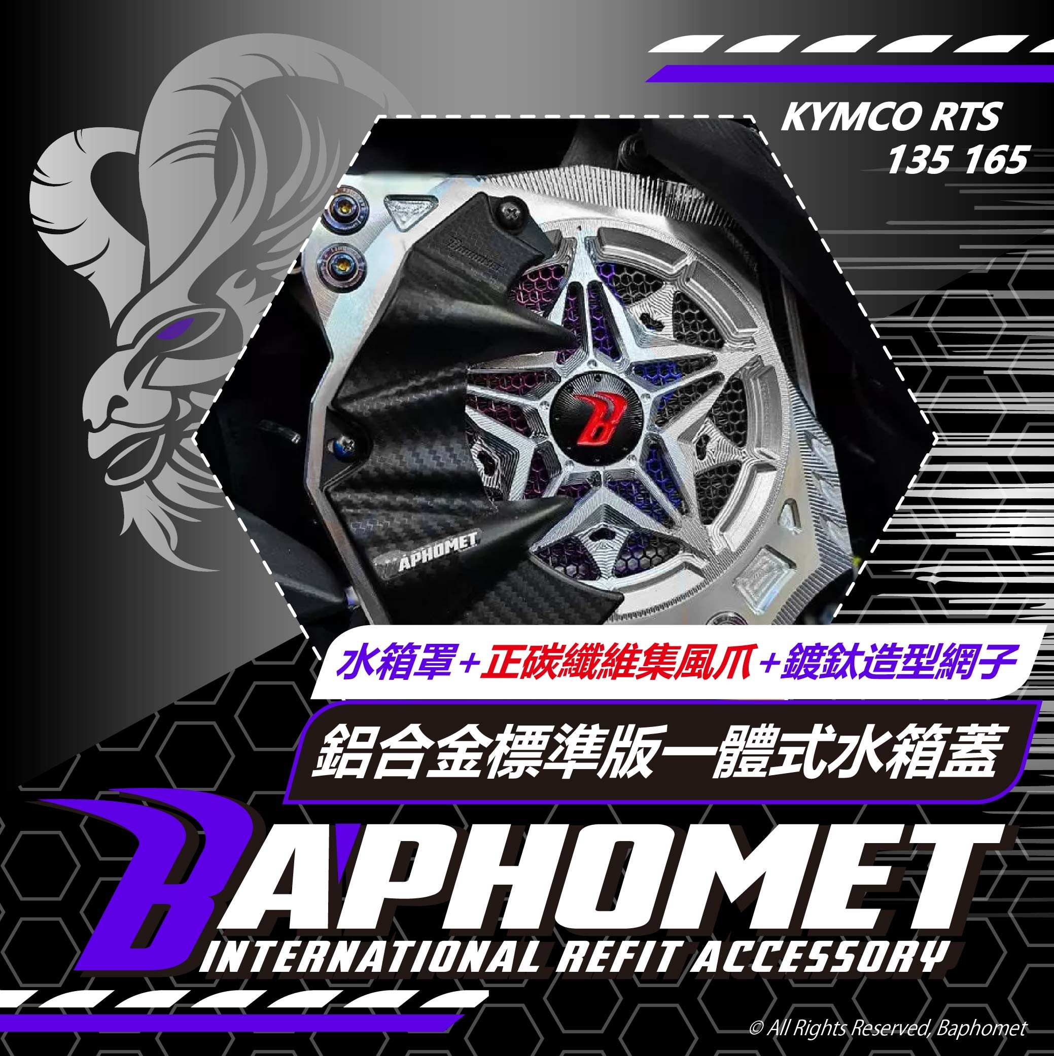 鋁合金標準版一體式水箱蓋(水箱罩+不鏽鋼鍍鈦網+正碳纖維集風爪) 適用 RTS水冷車系