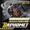 1組內含=鋁合金陽極底座、鋁合金陽極中框、進氣蓋(3D咬花)、六角蜂巢造型網子、凹字B圓形貼片、巴風特紅白配色透明貼紙:各1個、24.7mm鋁合金黑色套筒:2個、34.6mm鋁合金黑色套筒:3個、不銹鋼鍍鈦M6x55mm:3支、不銹鋼鍍鈦M6x65mm:2支、不鏽鋼鍍鈦M6墊片:5片