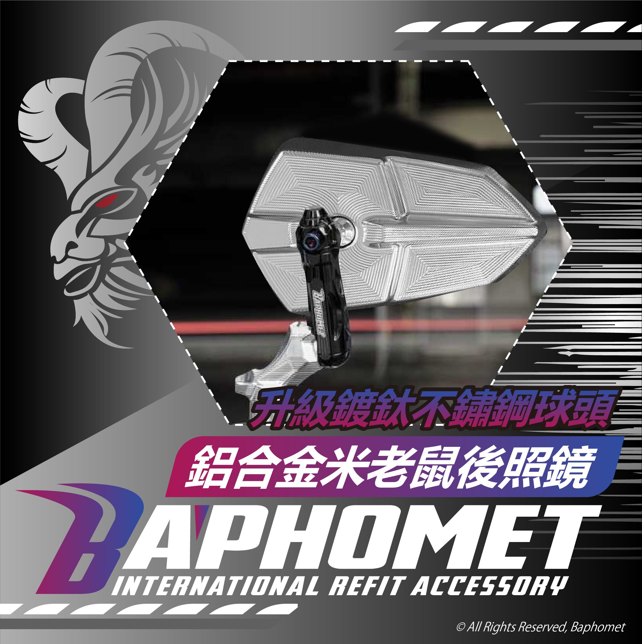 鋁合金米老鼠(手裏劍)後照鏡 ( 升級鍍鈦不鏽鋼球頭) (多車種通用型)