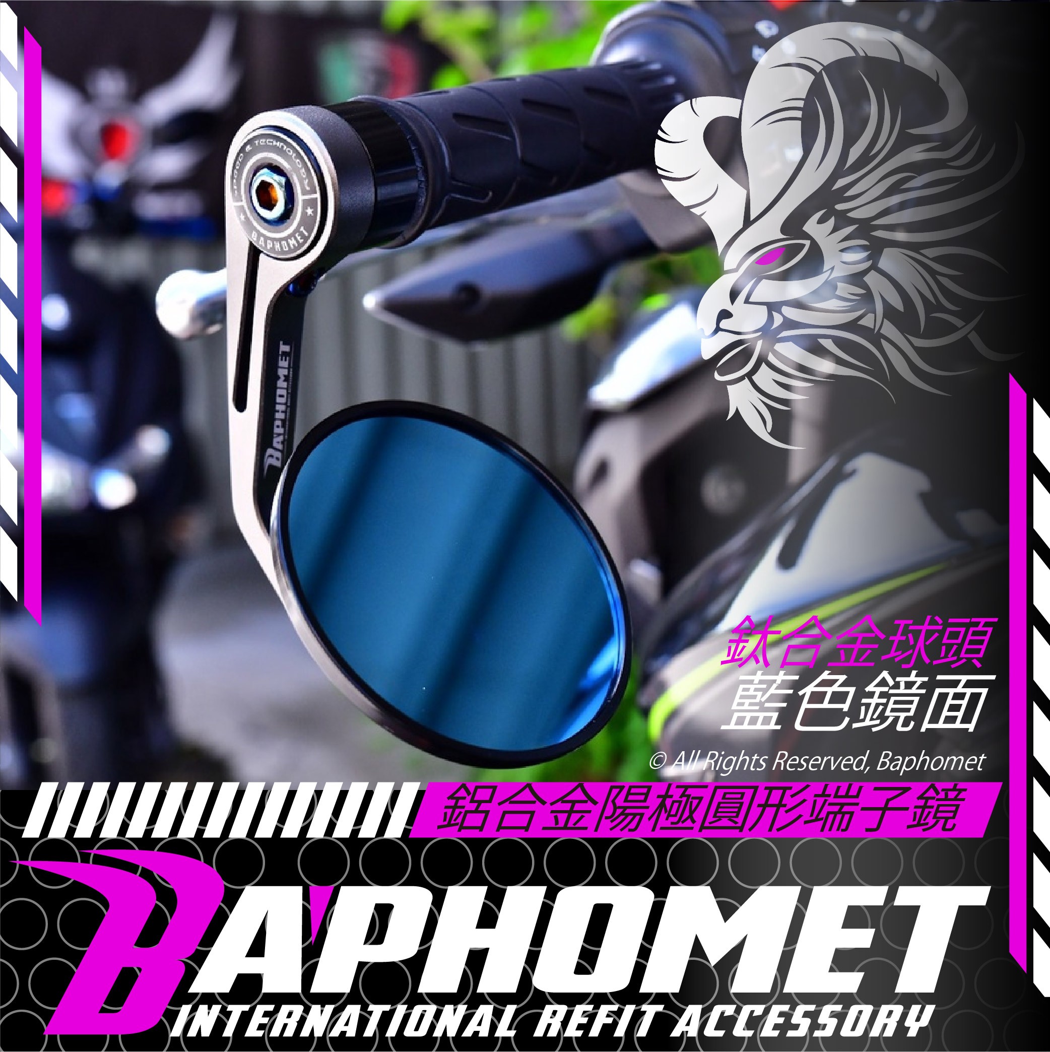 • 鋁合金陽極CNC圓形端子鏡+鈦合金球頭_藍鏡